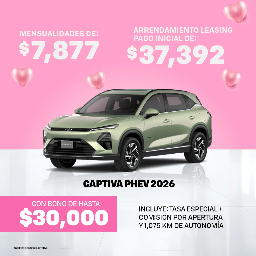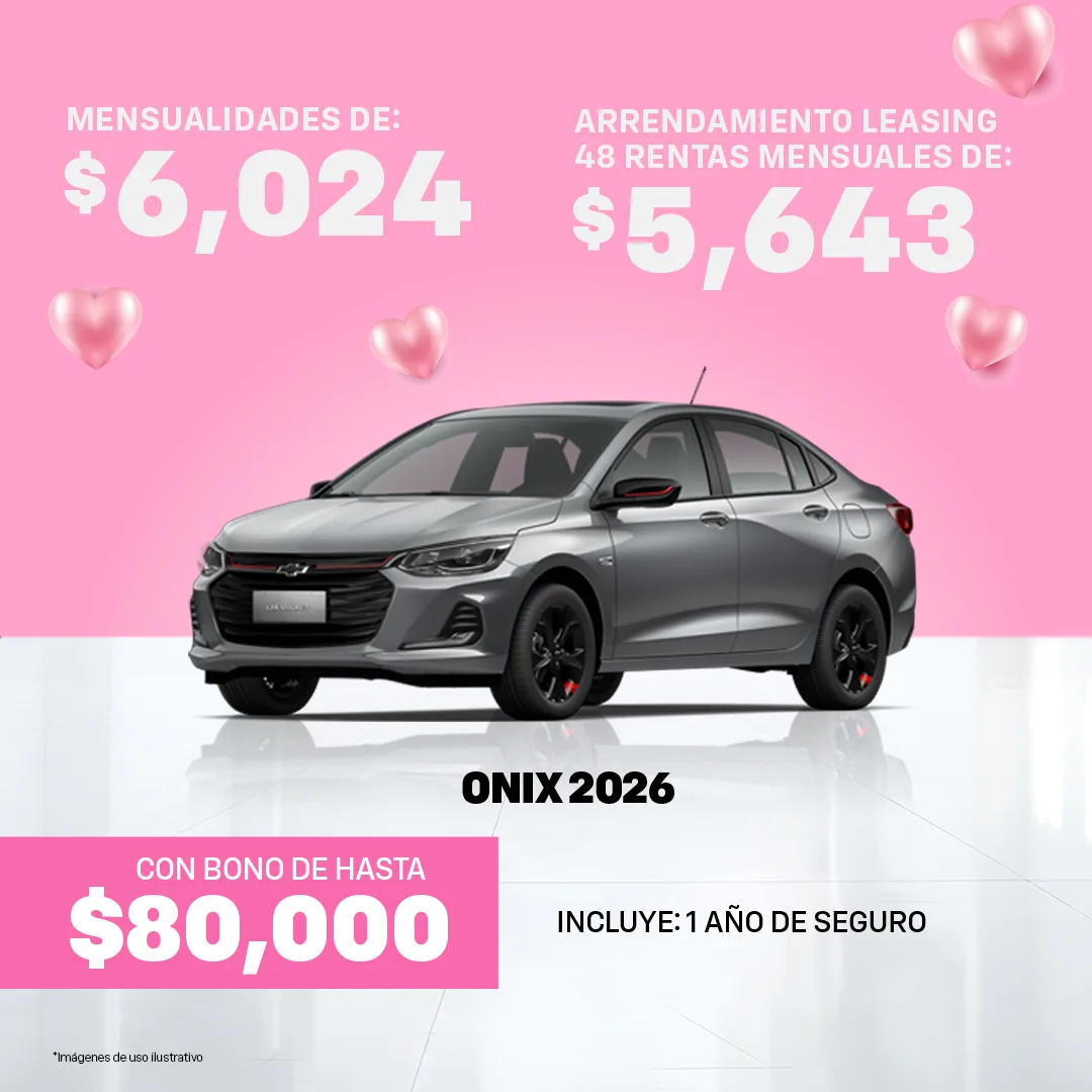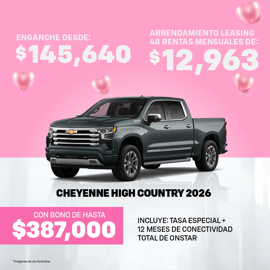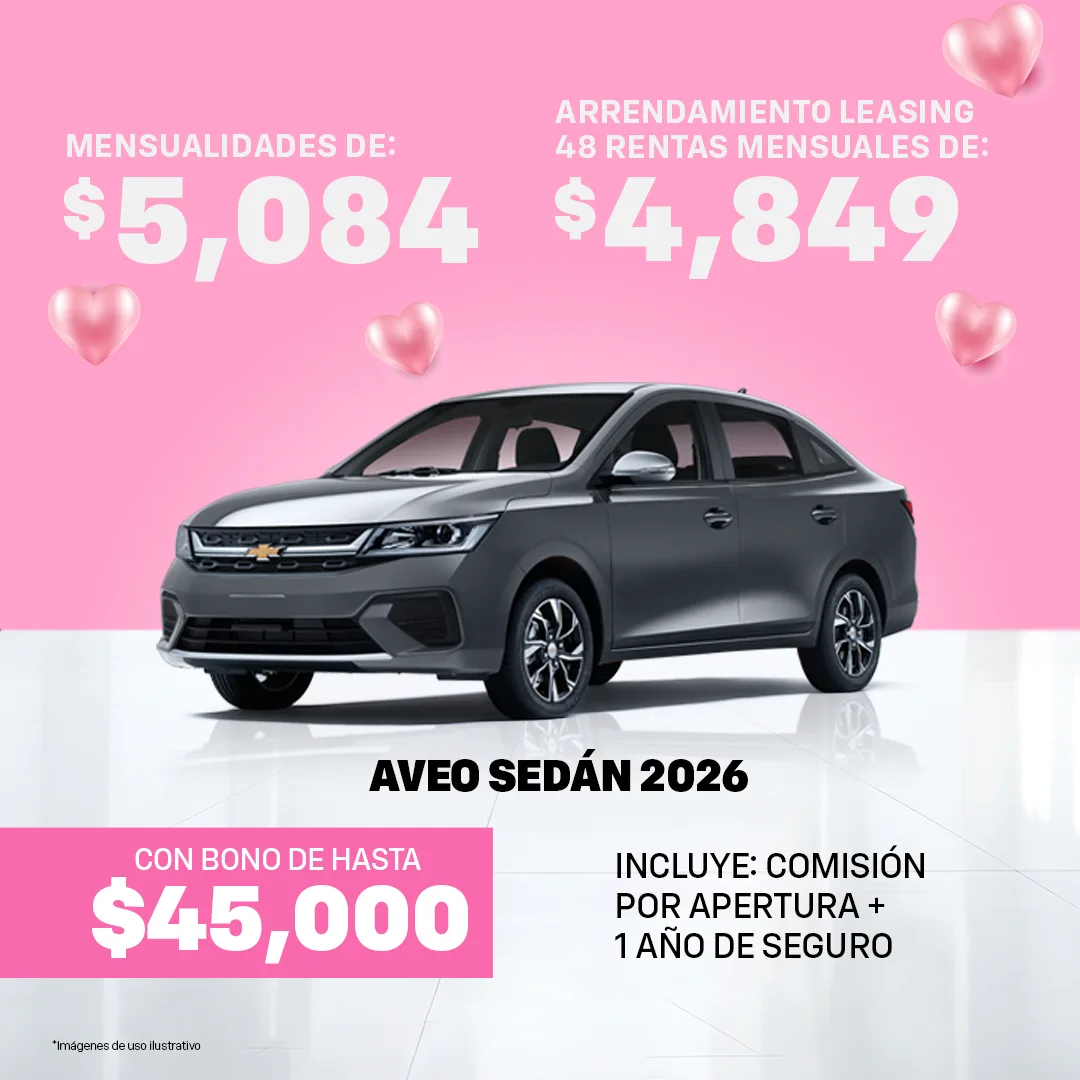 Oferta válida al 31 de Marzo del 2026, para las Unidades Chevrolet mostradas en ésta sección. Las imágenes y precios son demostrativos y no sustituyen a una cotización personal, en base a la cual se realizará una Solicitud de Crédito sujeta a autorización de GMF.