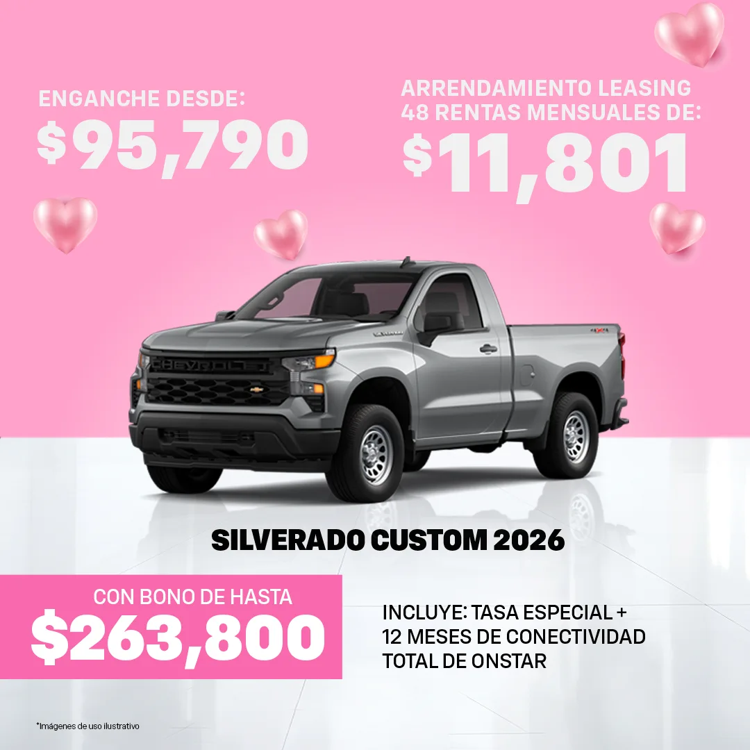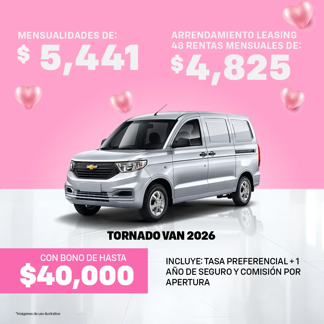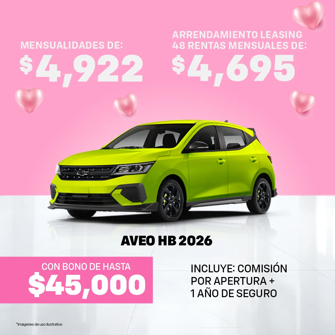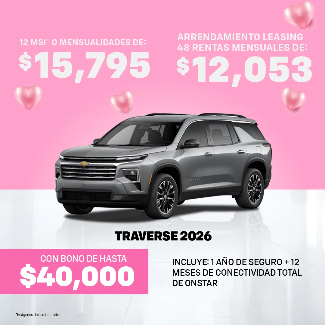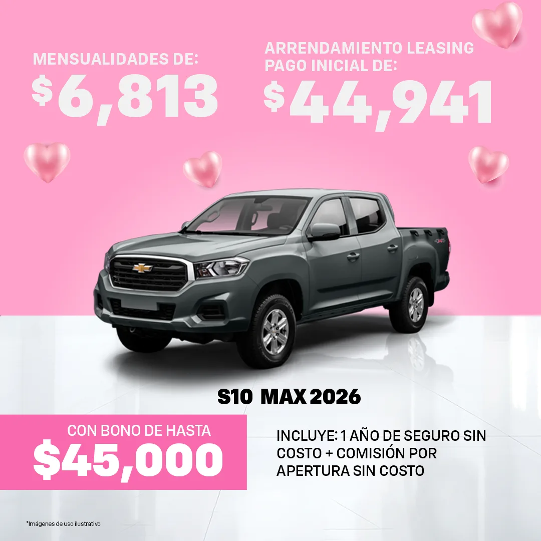Oferta válida al 31 de Marzo del 2026, para las Unidades Chevrolet mostradas en ésta sección. Las imágenes y precios son demostrativos y no sustituyen a una cotización personal, en base a la cual se realizará una Solicitud de Crédito sujeta a autorización de GMF.